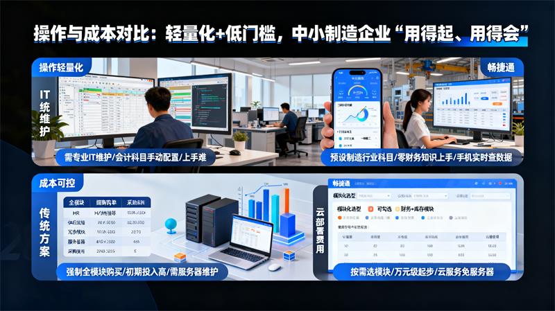 三、操作与成本对比:轻量化+低门槛,中小制造企业“用得起、用得会”
