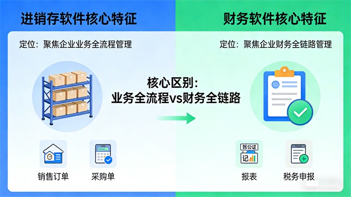 进销存软件与财务软件的核心区别,本质是管理定位不同——前者聚焦“业务流程”,后者聚焦“财务核算”,两者的功能、目标、使用场景完全不同,具体可从4个维度清晰区分。