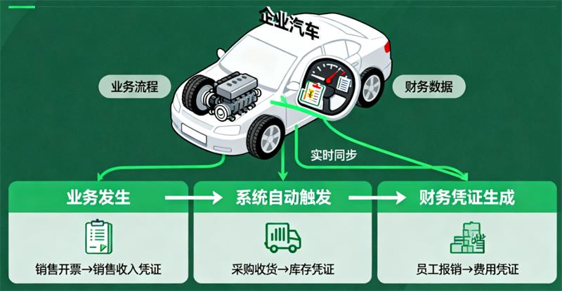 传统模式下,业务发生后,数据需要业务人员手工整理,再传递给财务人员手工录入系统,流程长、效率低、易出错。而业财一体化的核心在于:一旦业务发生,系统会自动触发相应的财务流程,生成唯一的、真实的财务凭证和数据。